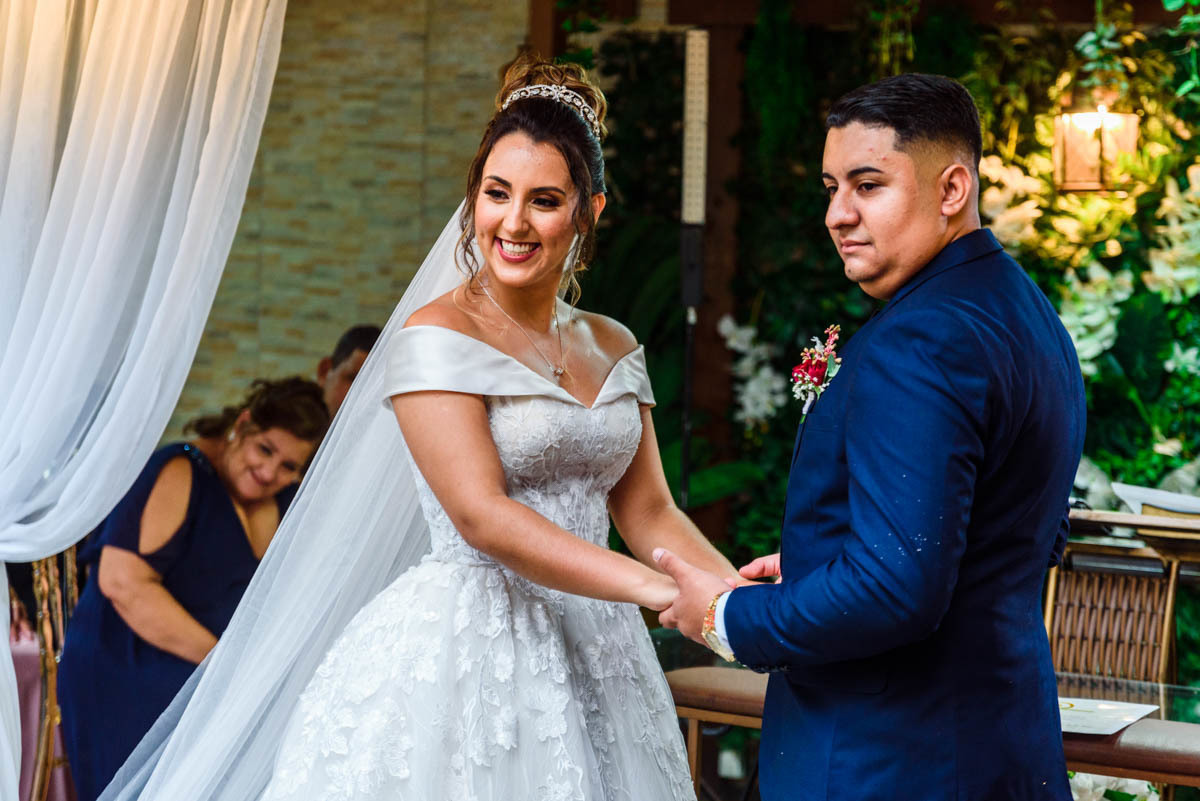 noiva colocando a alinça
